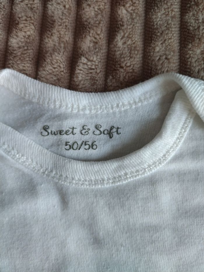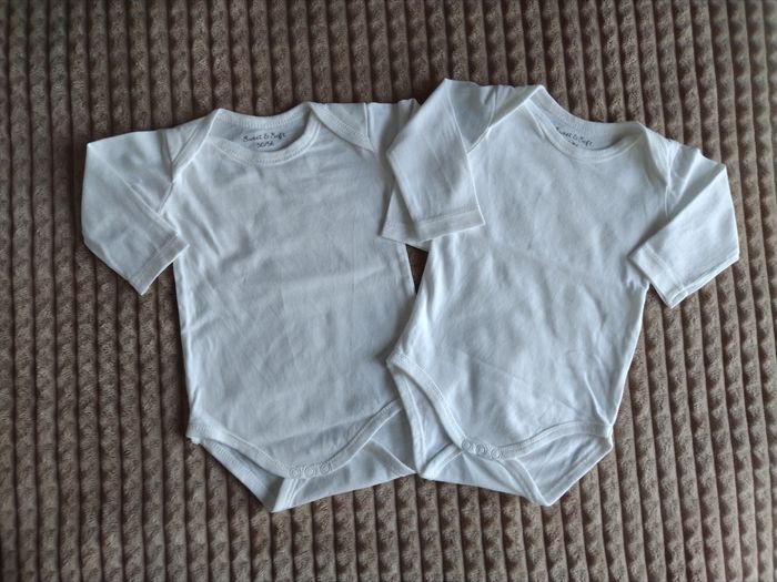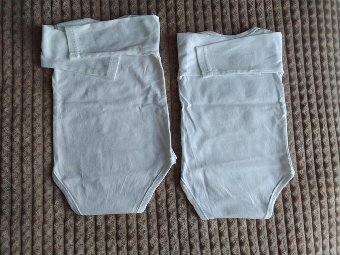 Lot de 2 bodies blancs en coton mixtes Neufs jamais portés juste lavés à l'achat Taille naissance à 3 mois