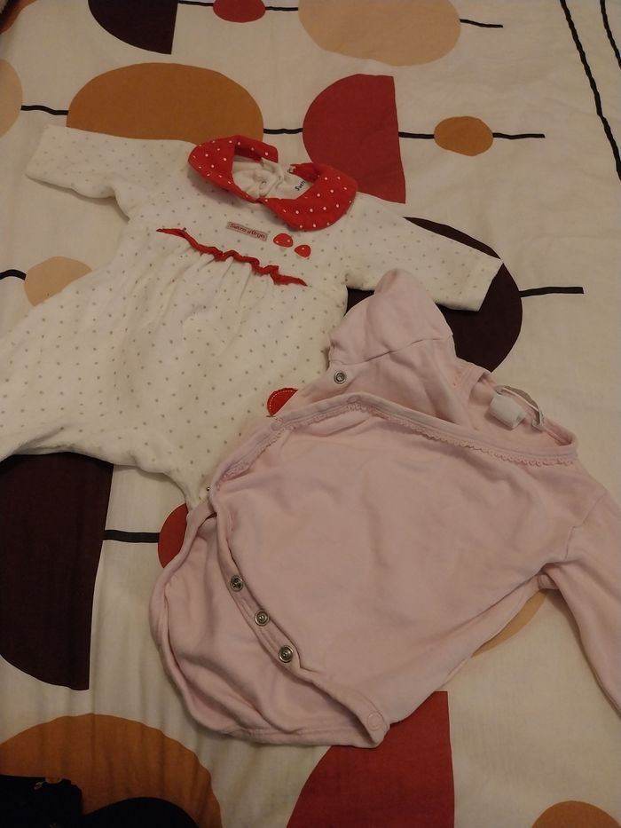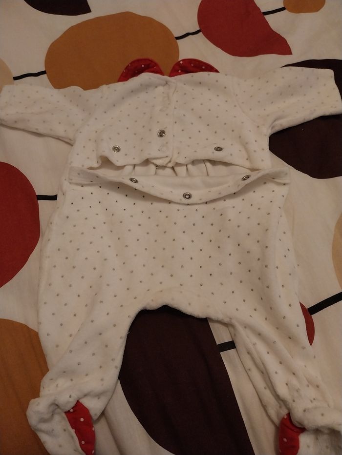 1 pyjama 50 cm 1 mois sucre d orge très bon etat tout doux 1 bodie rose 2/4 mois très bon etat manches longues