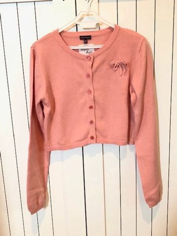 Gilet court de couleur corail/rose/orange 1 noeud cousu sur l'avant Boutons en forme d'éléphant 51% coton, 49% polyamide Très bon état #anso92000fille12ans
