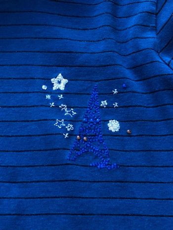 Sous pull bleu marine Très fines rayures plus foncées légèrement brillantes Motifs brillants sur le devant (photo 2) 100% coton Très bon état #anso92000fille10ans