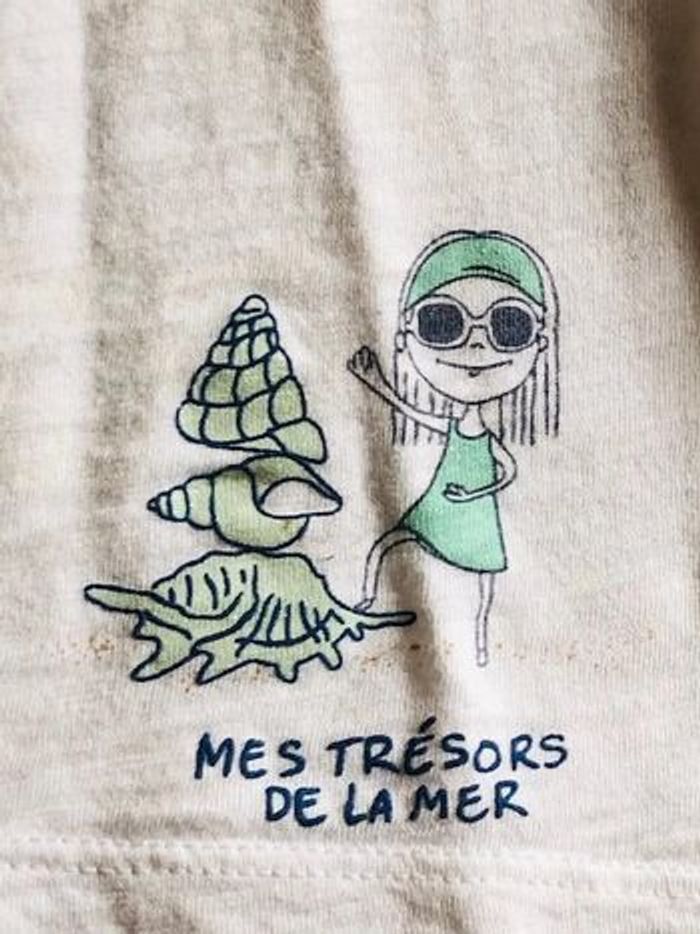 Débardeur léger blanc Motif vert "mes trésors de la mer", avec quelques paillettes 100% coton Très bon état #anso92000fille7ans