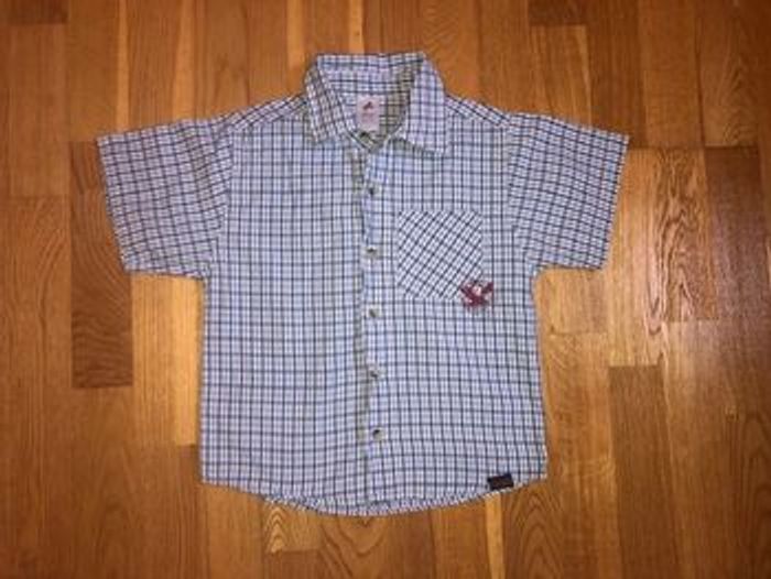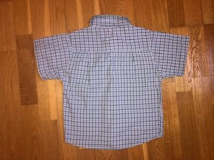 Chemise manches courtes à carreaux dans les tons bleus 1 poche sur le devant 100% coton Très bon état Je vends la même avec des carreaux dans les tons bleu et rouge #anso92000garçon5ans #anso92000garçon6ans