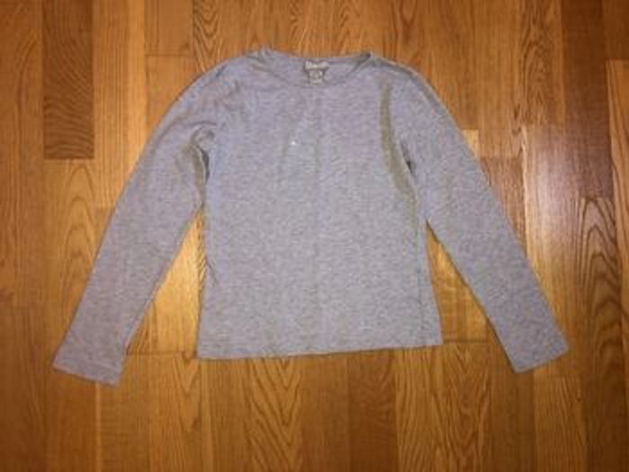Tee shirt manches longues, gris clair chiné Des petites paillettes argentées illuminent ce tee shirt (je n'ai pas réussi à les rendre visibles sur les photos) 100% coton Très bon état #anso92000fille10ans