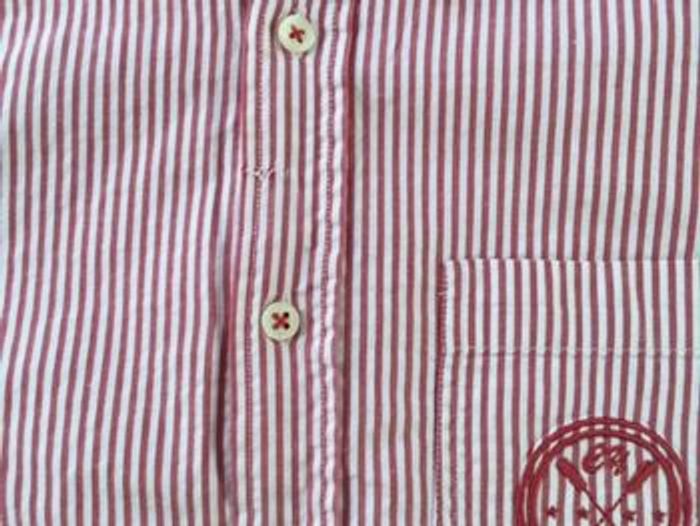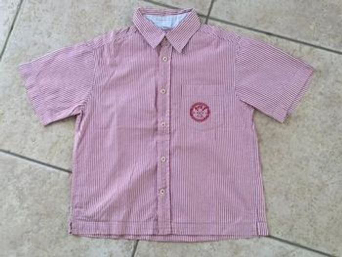 Rayures rouges et blanches Manches courtes Très bon état général mais je signale un accroc à la boutonnière (photo 2), d'où le prix 100% coton #anso92000garçon8ans