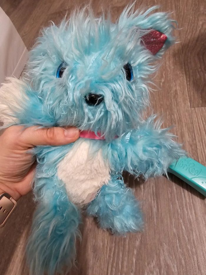 Le marron va avec la tondeuse quand on lui touche la tête il fait des bruits Le bleu va dans l'eau.