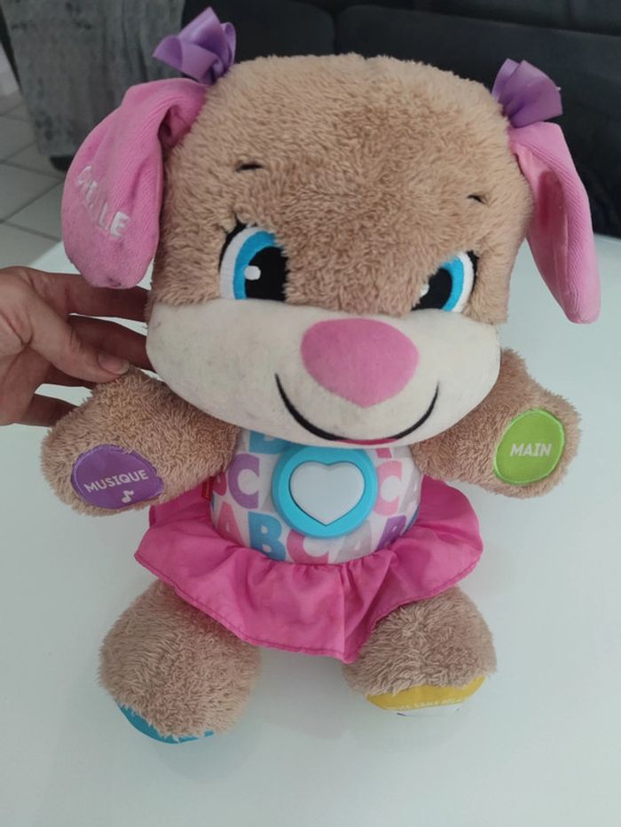 Puppy Fisher Price musical, peluche chien rose #mrnbjouets