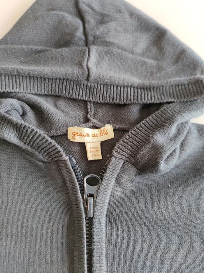 Gilet noir à capuche en maille marque grain de blé taille 6 mois #mrnbgars6mois