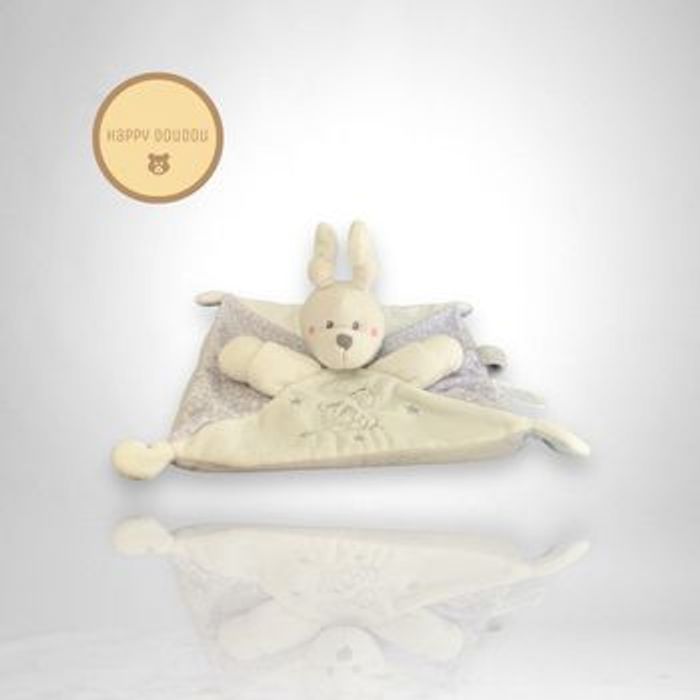Doudou plat carré lapin blanc et gris Nicotoy DP385 - photo numéro 1