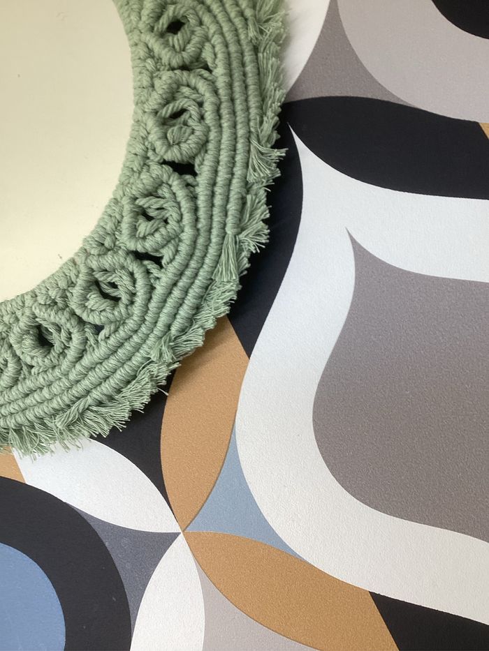 Couronne 32cm vert sauge faite main miroir environ 19cm #decoboho #macrame #ideecadeau #miroir