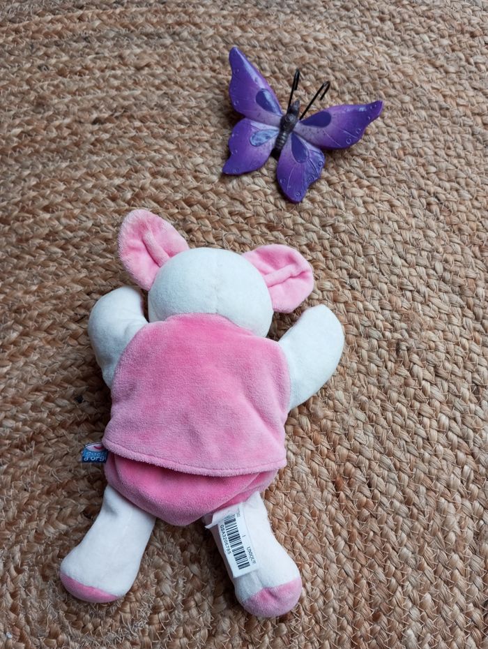 Sucre d'orge Doudou souris Rose Blanc Broderies spirale ‼️Moins doux qu'à l'origine #douceur_sucredorge C27