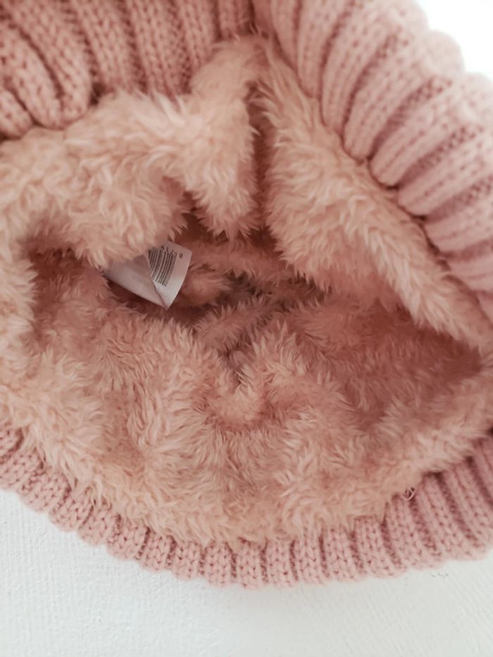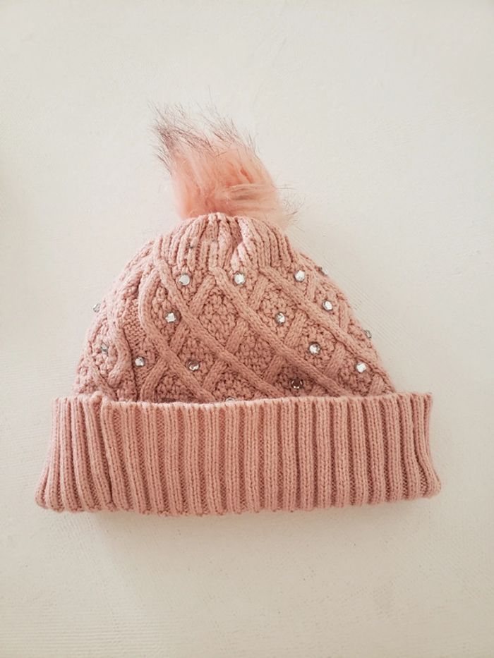 Bonnet fille rose rembourré bien chaud avec strass et pompon taille plutot 12mois