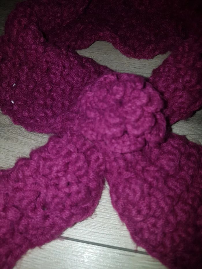 Écharpe bébé fille violet prune crochet laine se ferme avec passant - photo numéro 1