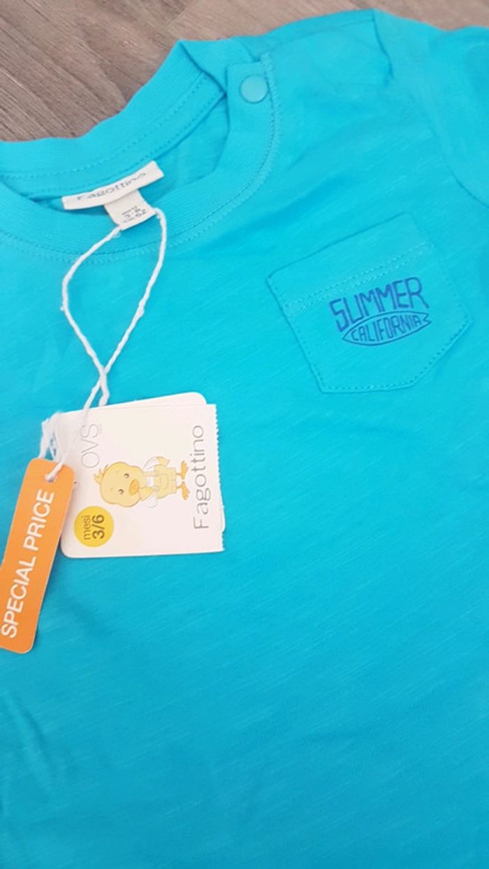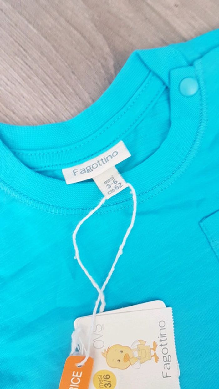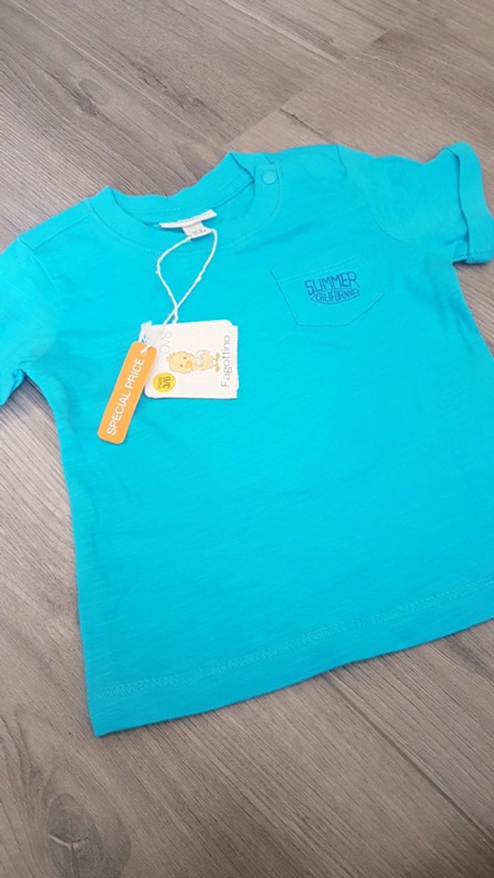 Tee-shirt manches courtes fagottino 3/6 mois turquoise neuf - photo numéro 1