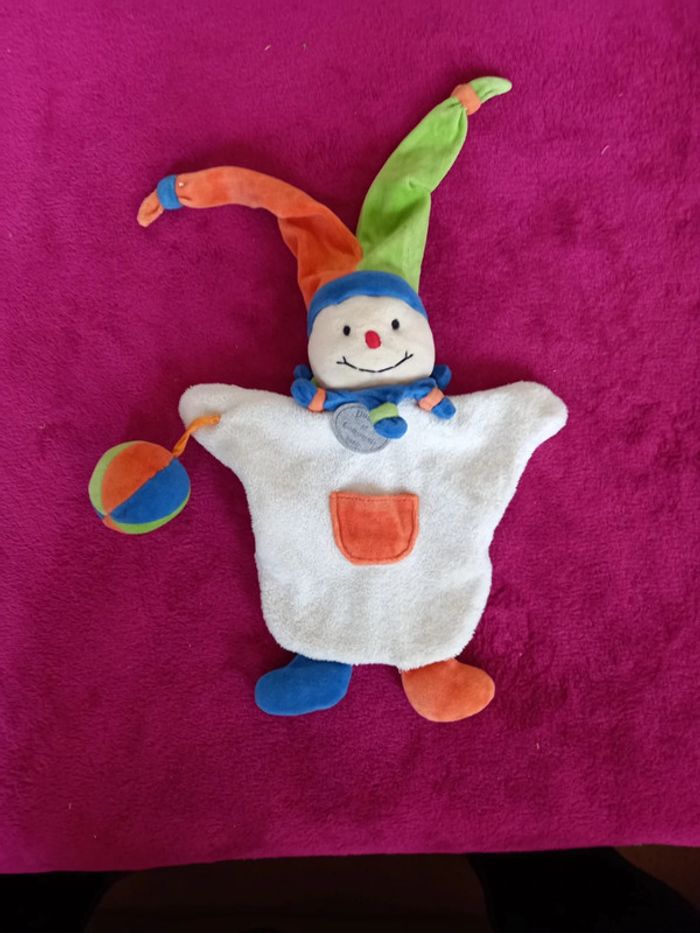 Doudou marionnette bonhomme avec balle et chapeau ,de multiples couleurs Marque : Doudou et compagnie En parfait état
