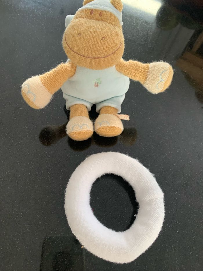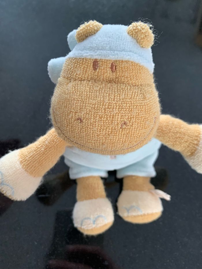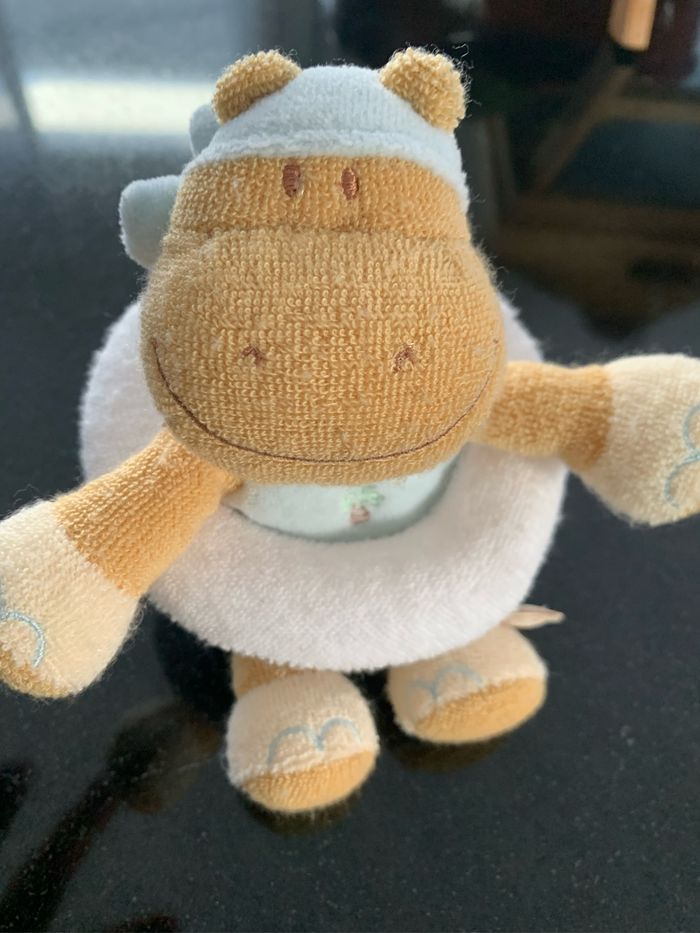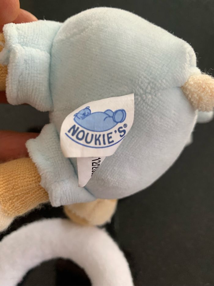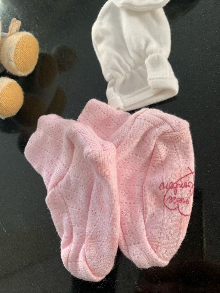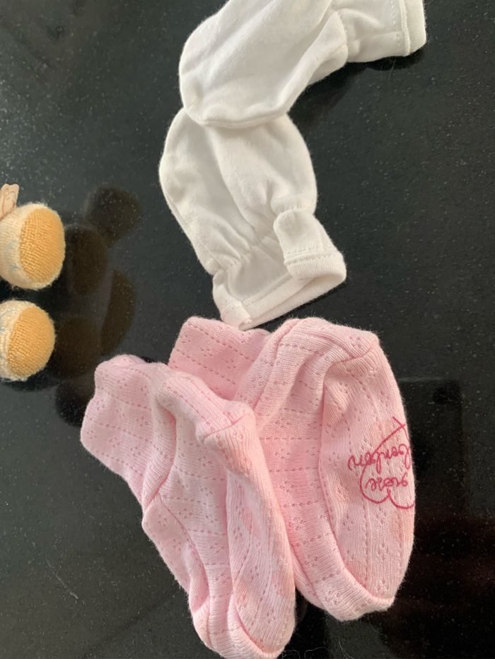 Lot comprenant une paire de moufles, une paire de chaussons, le tout neuf de marque, petit bateau plus un doudou anneaux également Neuf