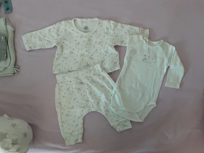 Ensemble coton organique mi-saison petites fleurs TBE T. 3 mois - photo numéro 1