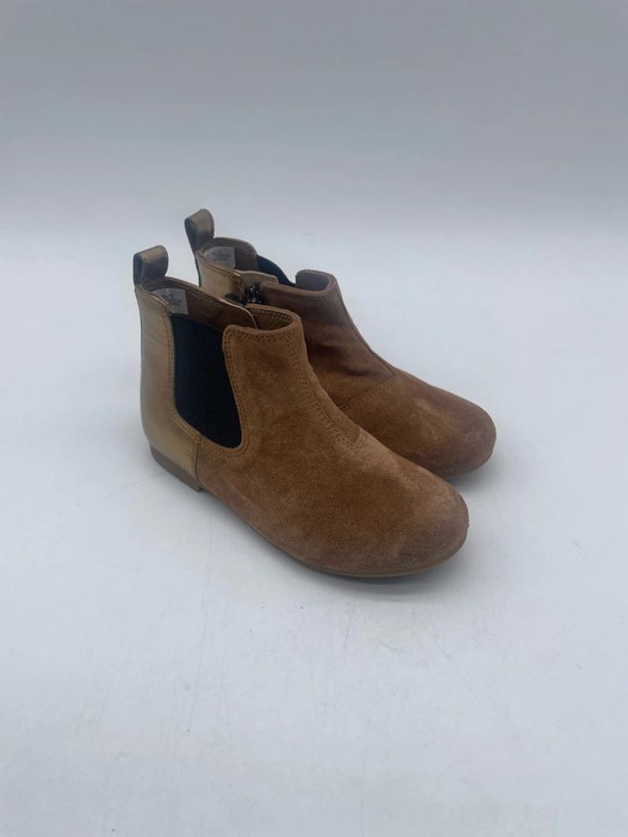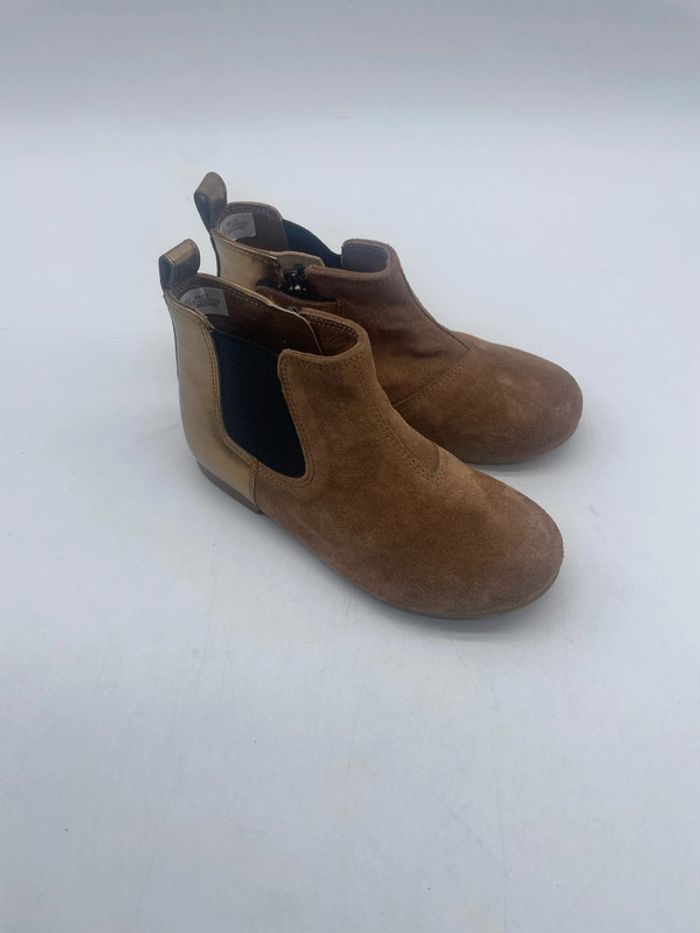 Magnifiques Bottines en cuir marron et doré - 24 Daim et cuir. Élastique d’aisance et zip. Excellente qualité.