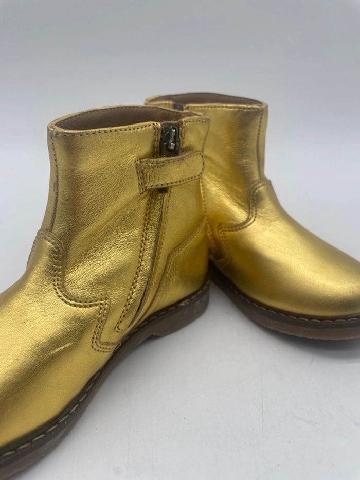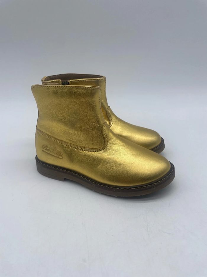 Somptueuses Bottines Pom d’Api en cuir doré - 24 Zip. Semelle anti-glisse. Excellente qualité, excellente marque, spécialisée dans le confort des pieds d’enfants.