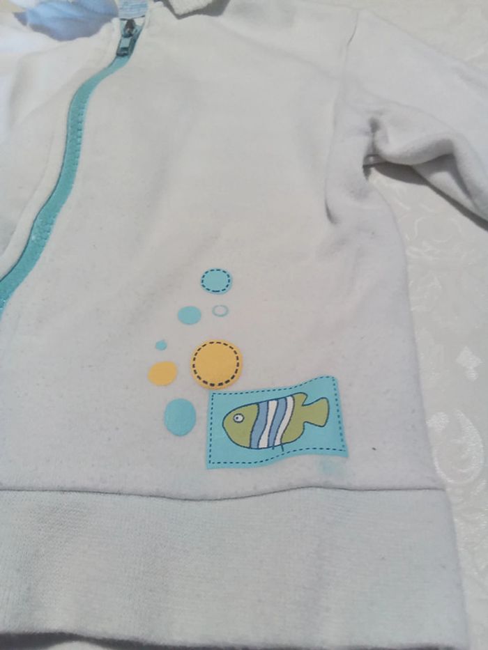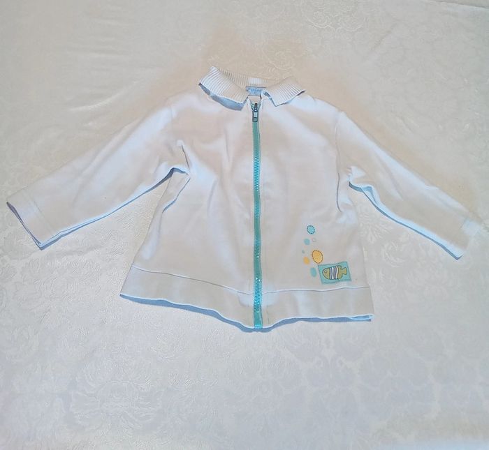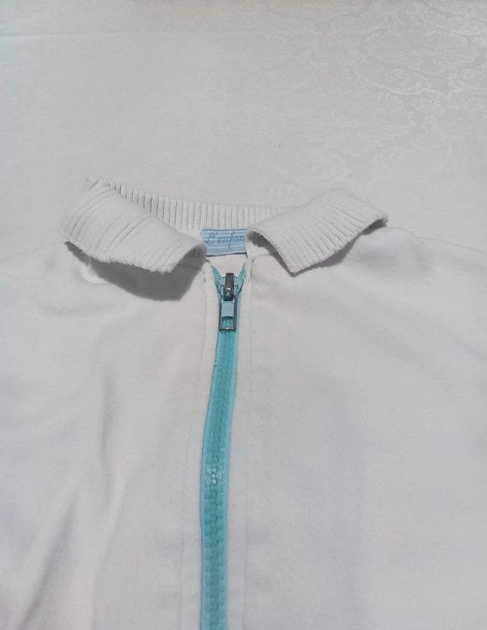 Porté 3 fois, taille correctement, agréable à porter, avec petit dessin sur le devant, avec petit col , fermeture un tout petit peu décoloré mais ne gêne pas
