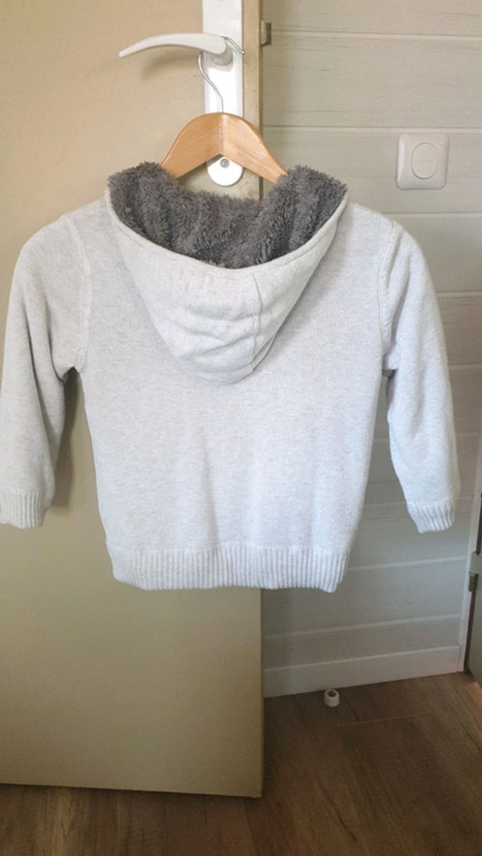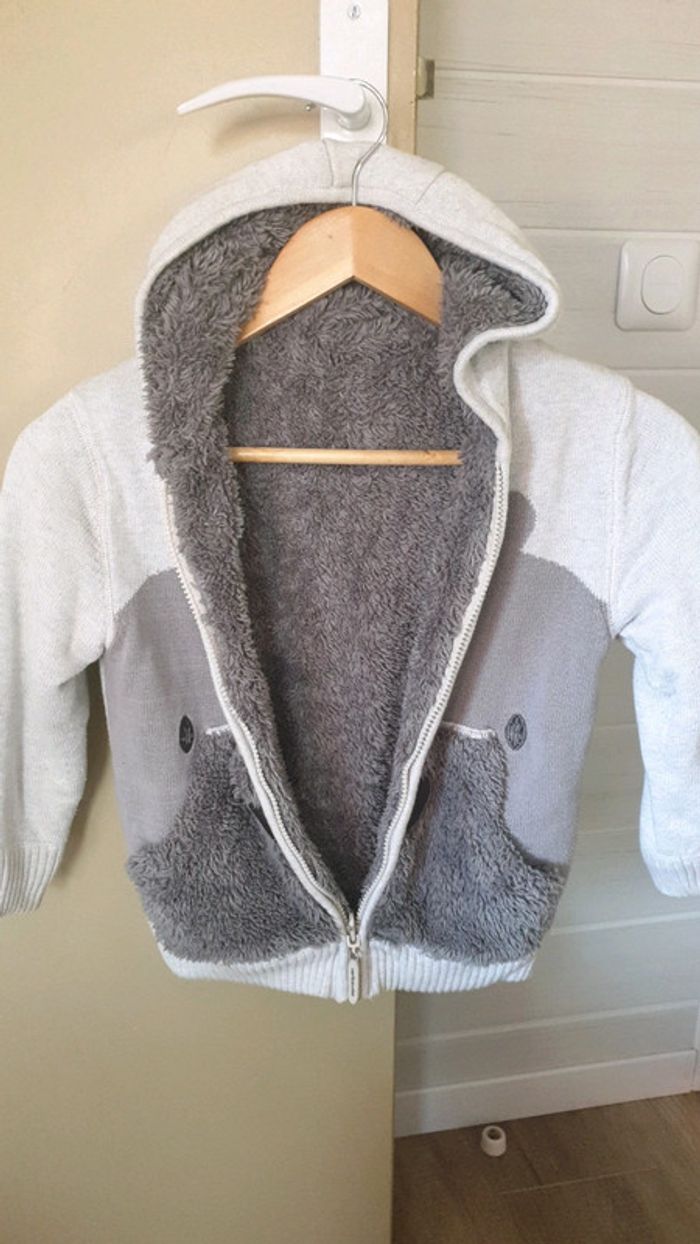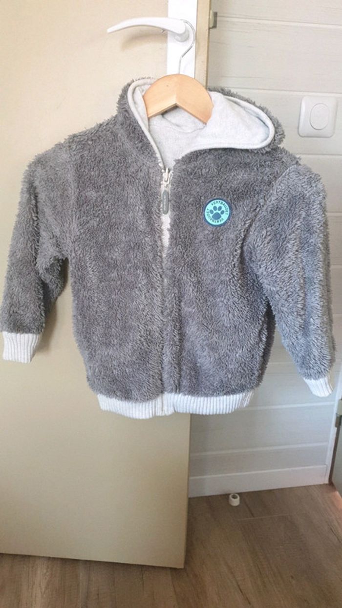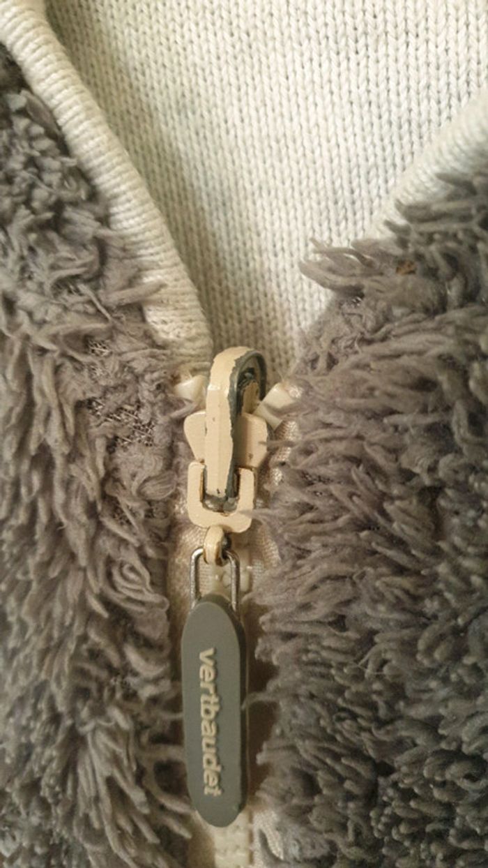 Veste bien chaude, réversible. Taille un peu plus grand. Seul bémol, la peinture du haut de la fermeture éclair est un peu abîmée.