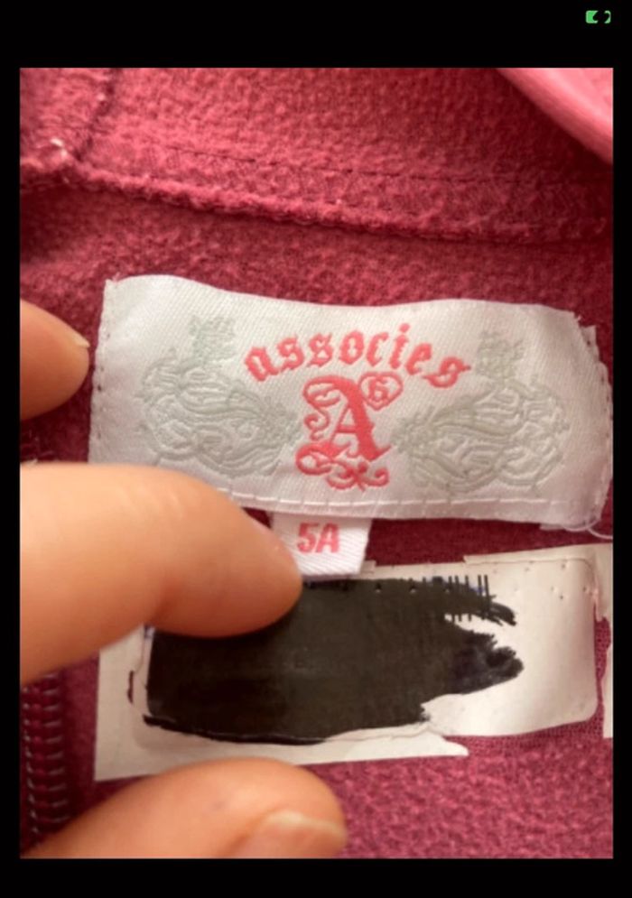Veste de sport taille 5 ans fille Tache de décoloration sur la manche à l’arrière Prénom passer au feutre