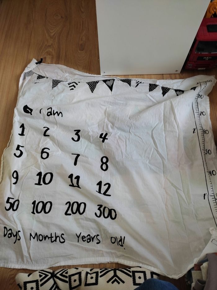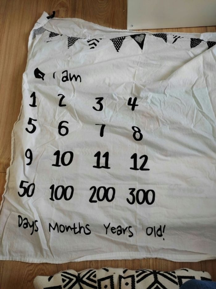Tapis étape mois semaines jours bébé sur la gauche et sur la droite une place pour installer bébé pour la photo Noir et blanc