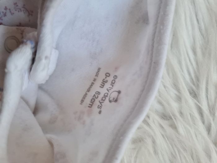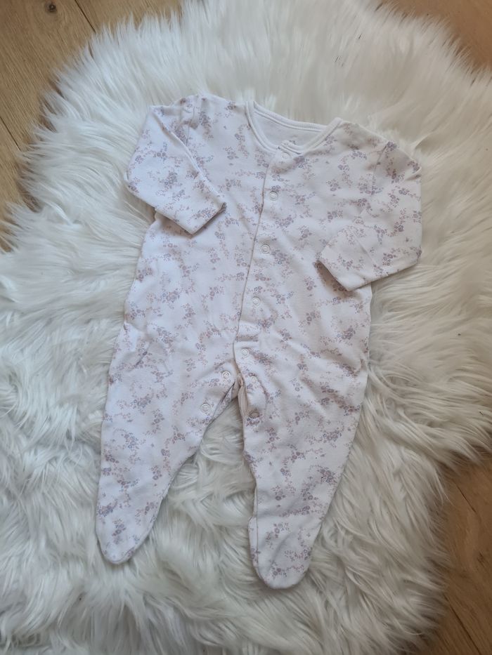 Pyjama blanc fleurie Matière qui bouloche facile( ça commence à boulocher) Esarly days 0/3mois 62cm