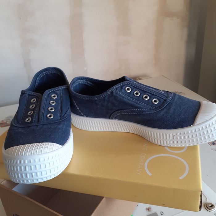 Paire de baskets en toile bleu jean sans lacets neuves