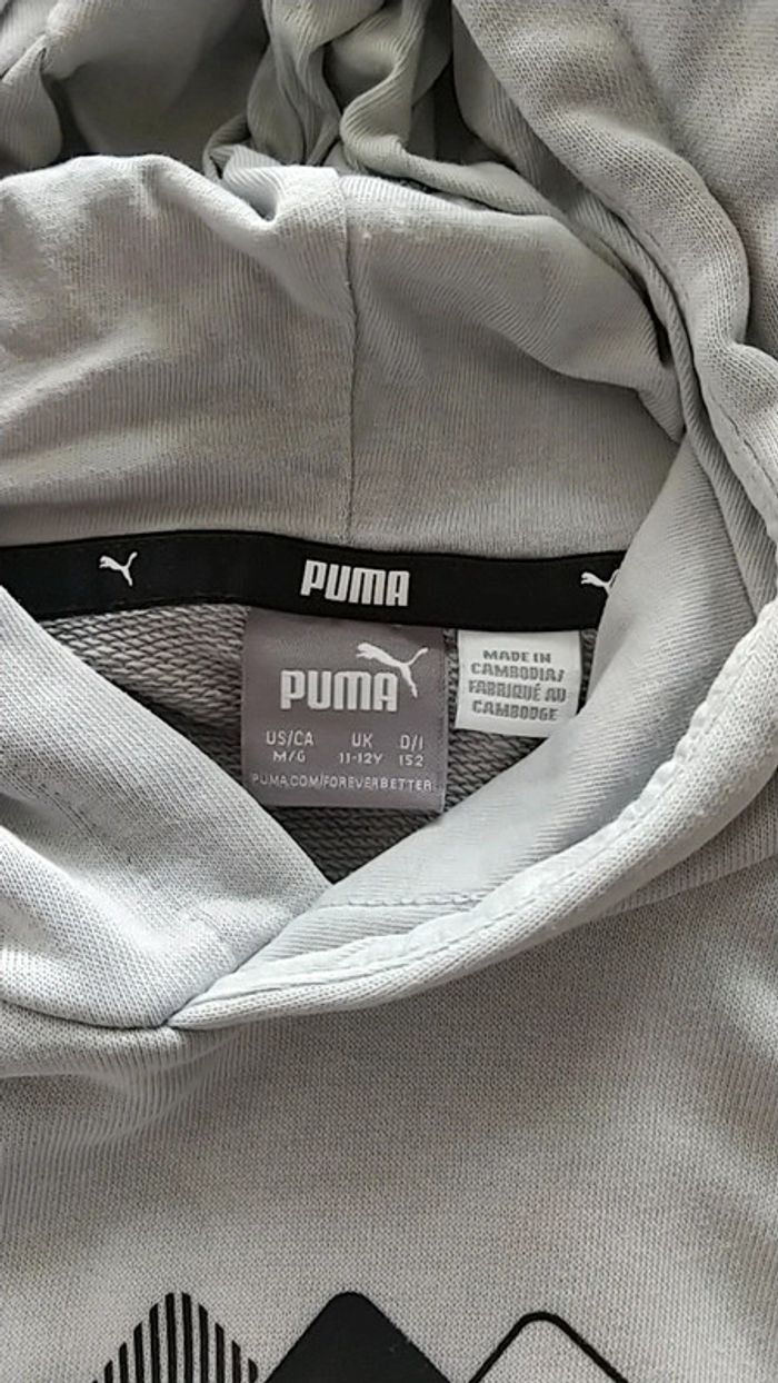 Sweat Puma gris excellent état hormis une petite tâche voir photo. Taille 11-12 ans