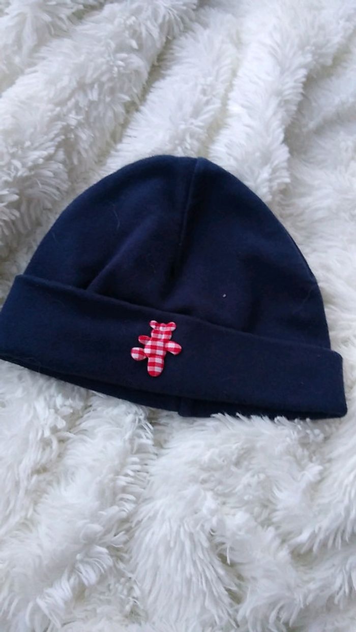 Bonnet bleu marine. Noté 6-12 mois mais taille plus petit