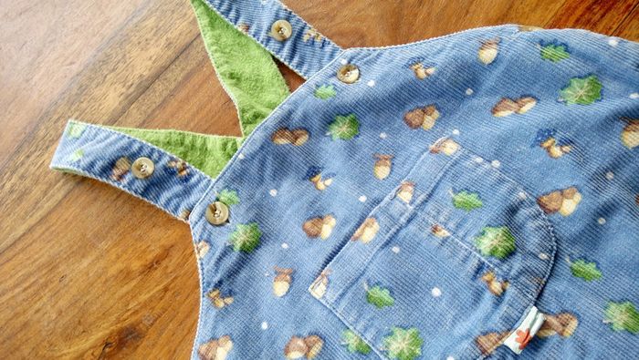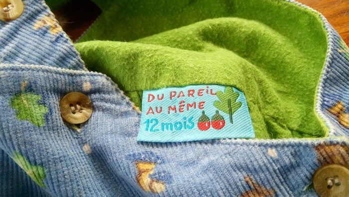 Robe bleue velours motif noisettes et champignons. 12 mois.