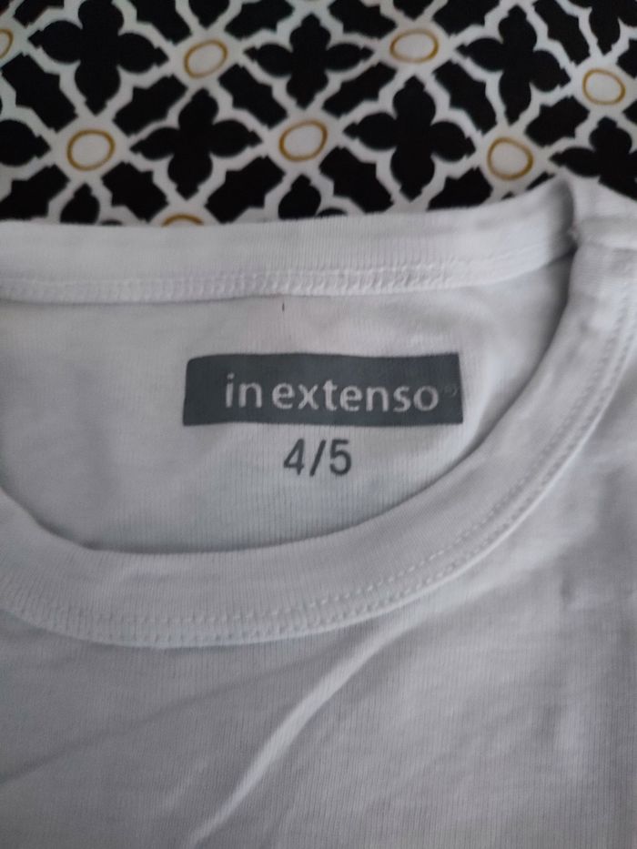 Bonjour, t.shirt mixte "Inextenso" blanc 4/5 ans. Bon état. 1€