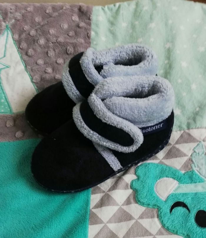Portés 5 fois quasi neufs Couelur bleu marine et bleu ciel idéal pour l'hiver ils sont fourrés chausson