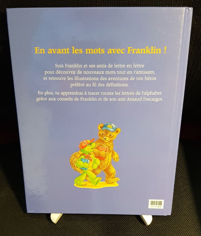 En avant les mots avec Franklin ! Suis Franklin et ses amis de lettre en lettre pour découvrir de nouveaux mots tout en t'amusant, et retrouve les illustrations des aventures de ton héros préféré au fil des définitions. En plus, tu apprendras à tracer toutes les lettres de l'alphabet grâce aux conseils de Franklin et de son ami Arnaud l'escargot. Également des recueils Franklin disponibles. Édition cartonnée Format 221x285 ISBN 2744186414 août-05 Très Bon État, quelques marques/fines rayures sur couverture, intérieur TBE, sans écritures. Une imposante liste de livres pour enfants disponible, essayez un premier contact :) Poids hors emballage : 770 g
