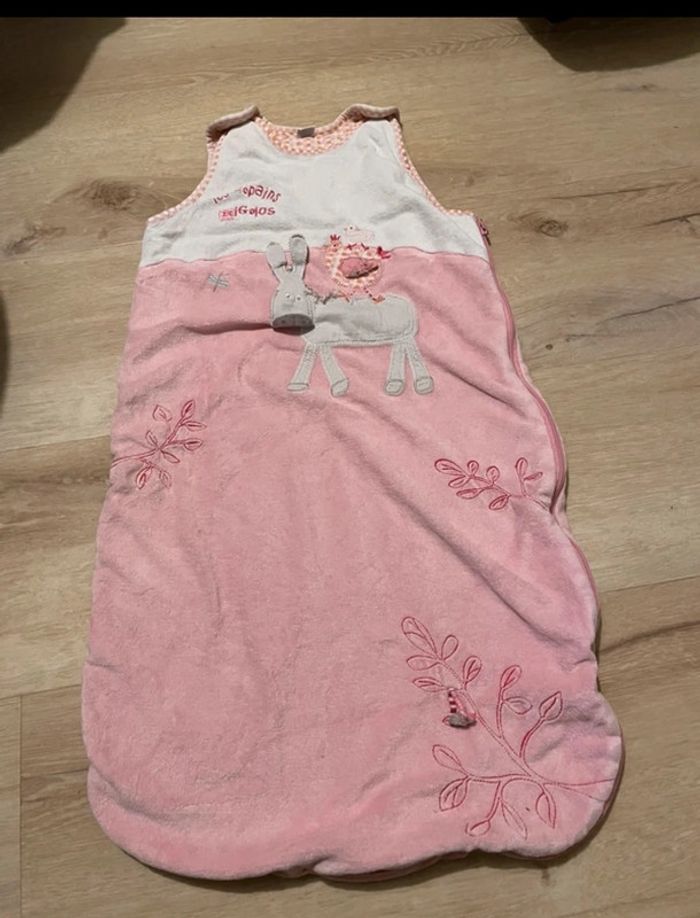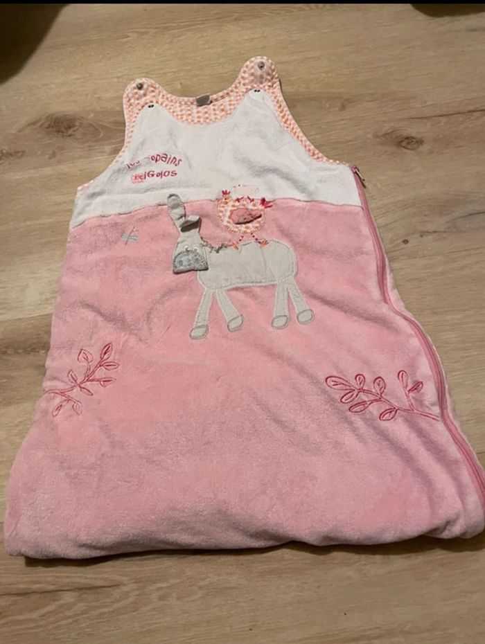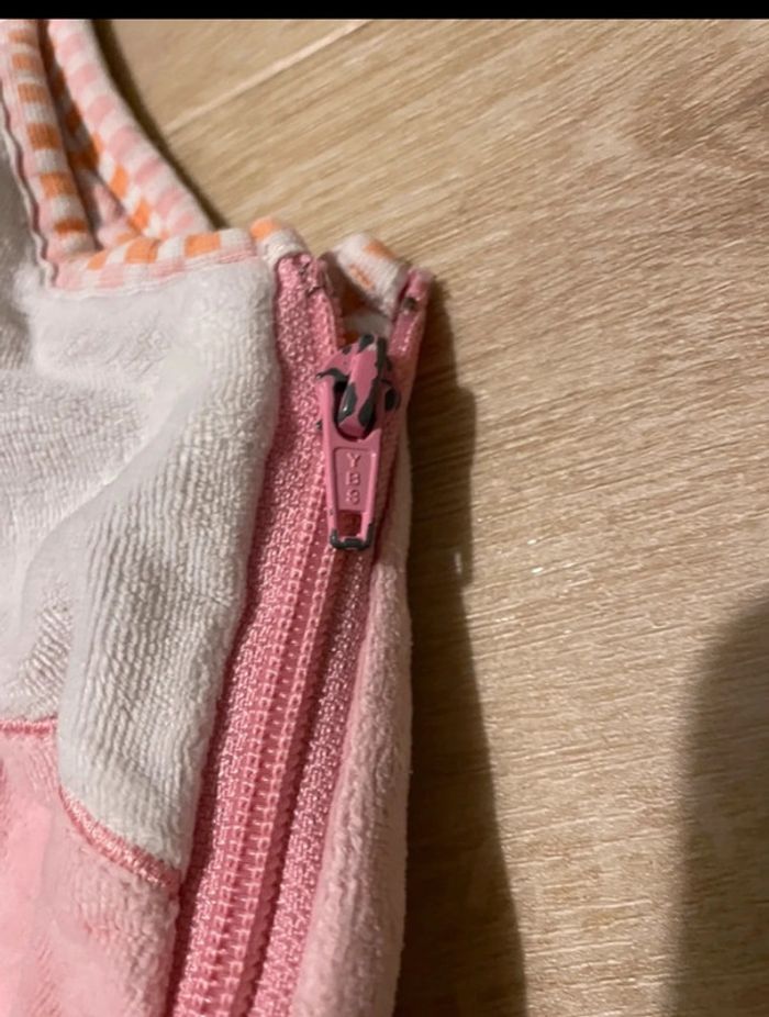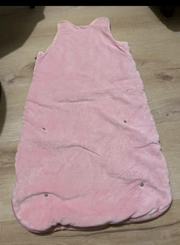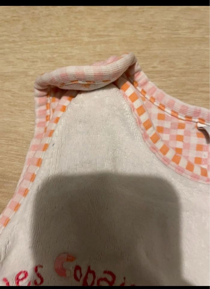 Gigoteuse/turbulette blanche et rose Épaisse Fermeture pressions en haut et fermeture éclair sur le côté Elle est évolutive et peut se raccourcir Pas de trous ni de taches, juste un peu moins douce