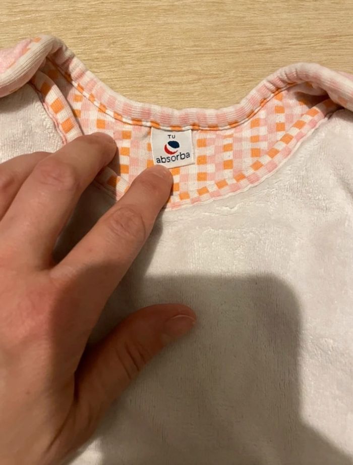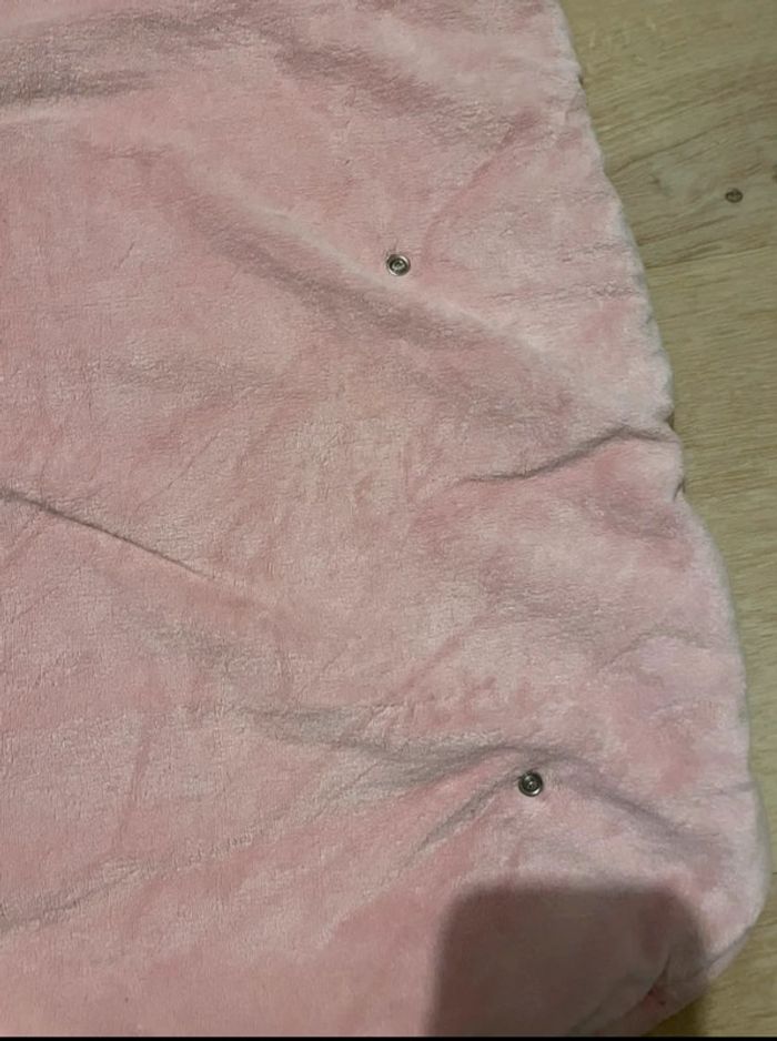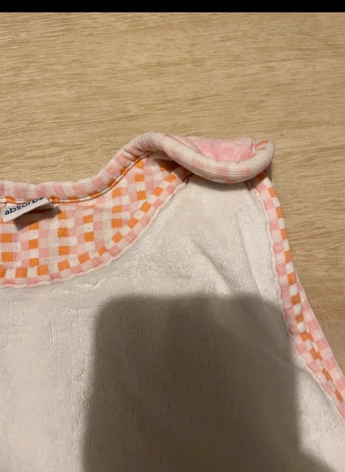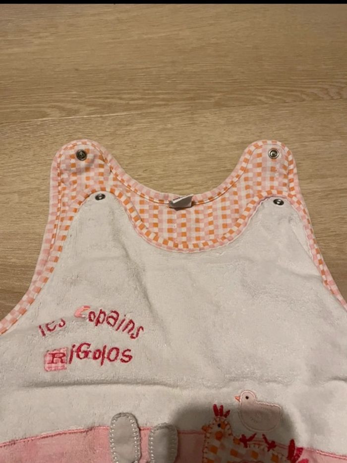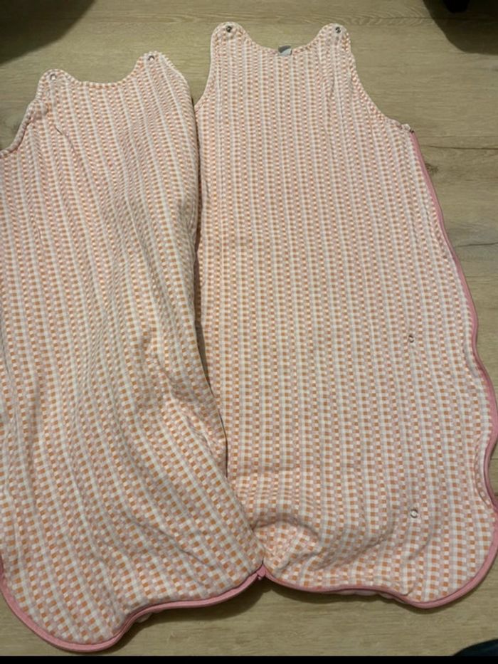 Gigoteuse/turbulette blanche et rose Épaisse Fermeture pressions en haut et fermeture éclair sur le côté Elle est évolutive et peut se raccourcir Pas de trous ni de taches, juste un peu moins douce