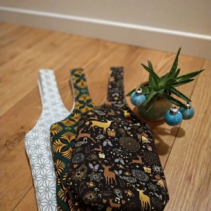 Sac pour bouteille, idéal pour offrir ou pour transporter son vin préféré. Déclinable en plusieurs couleurs, n'hésitez pas à me contacter pour demander les disponibilités.fait main