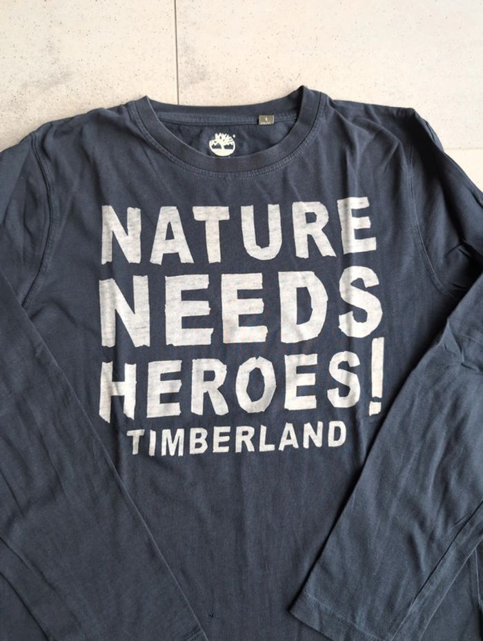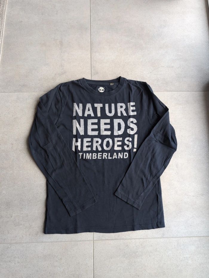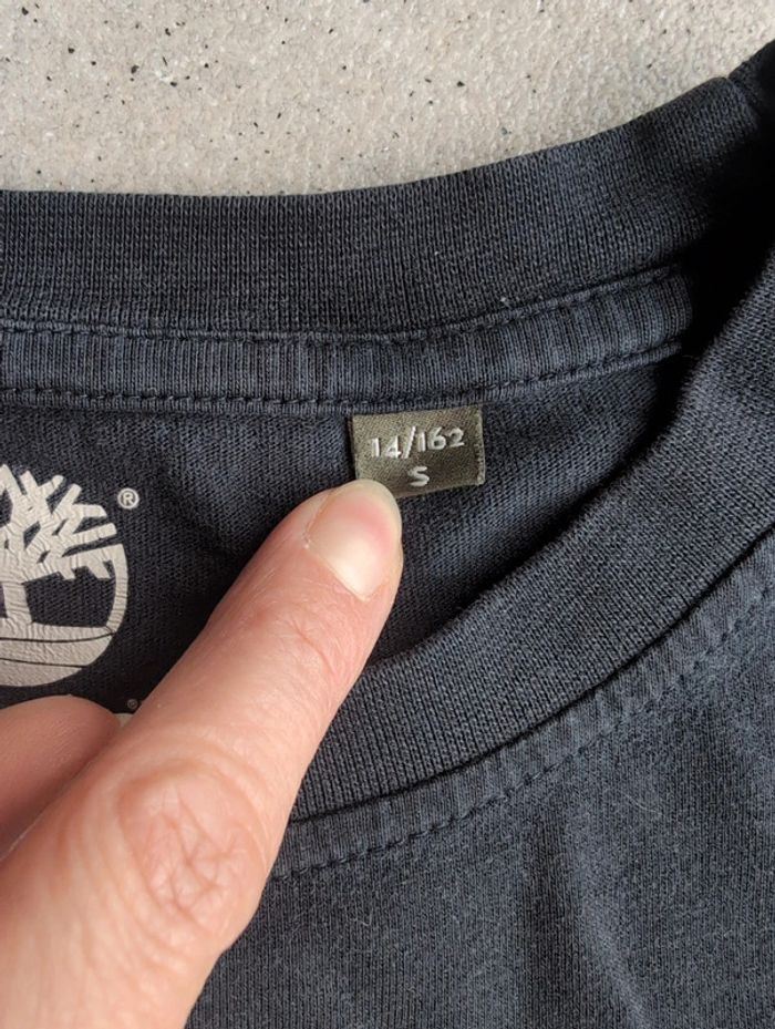 T-shirt manches longues Timberland noté 14/162 S en très bon état général, cependant sélectionné bon état car il a été recousu sur l'avant pour un petit trou (visible sur les photos près de la manche droite) Maison non-fumeur #elodie_geo_vêtements_garçon_14ans Y5