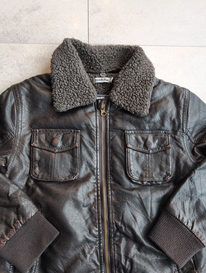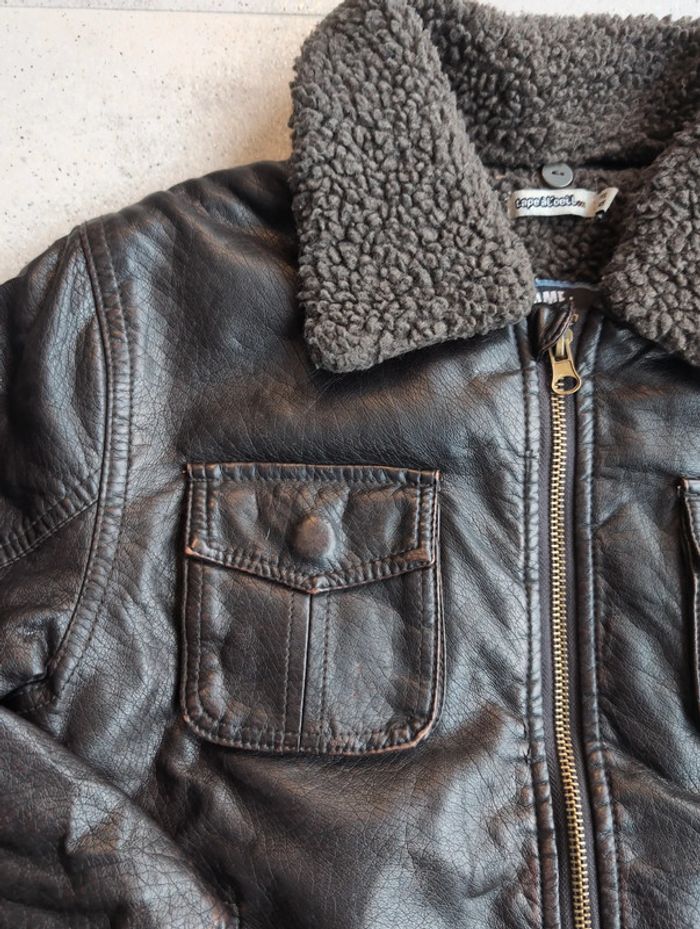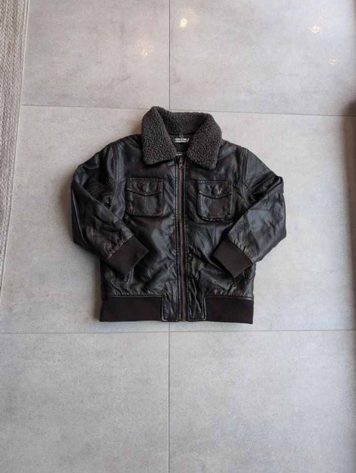 Blouson style aviateur tape à l'oeil noté 8 ans 128 cm en très bon état, la fourrure du col est amovible Deux légères marques blanches à l'arrière voir les deux dernières photos Maison non-fumeur #elodie_geo_vêtements_garçon_8ans Z3