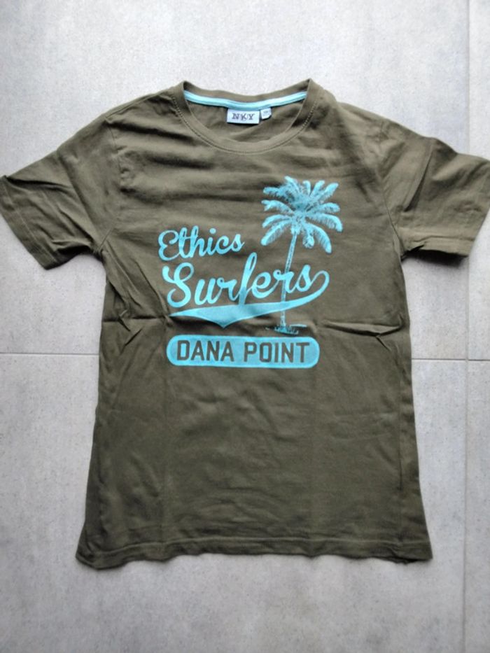 Tee-shirt Kiabi 12 ans en très bon état, très peu porté (kaki/turquoise) Maison non-fumeur #elodie_geo_vêtements_garçon_12ans B4
