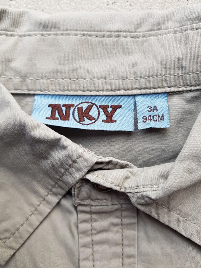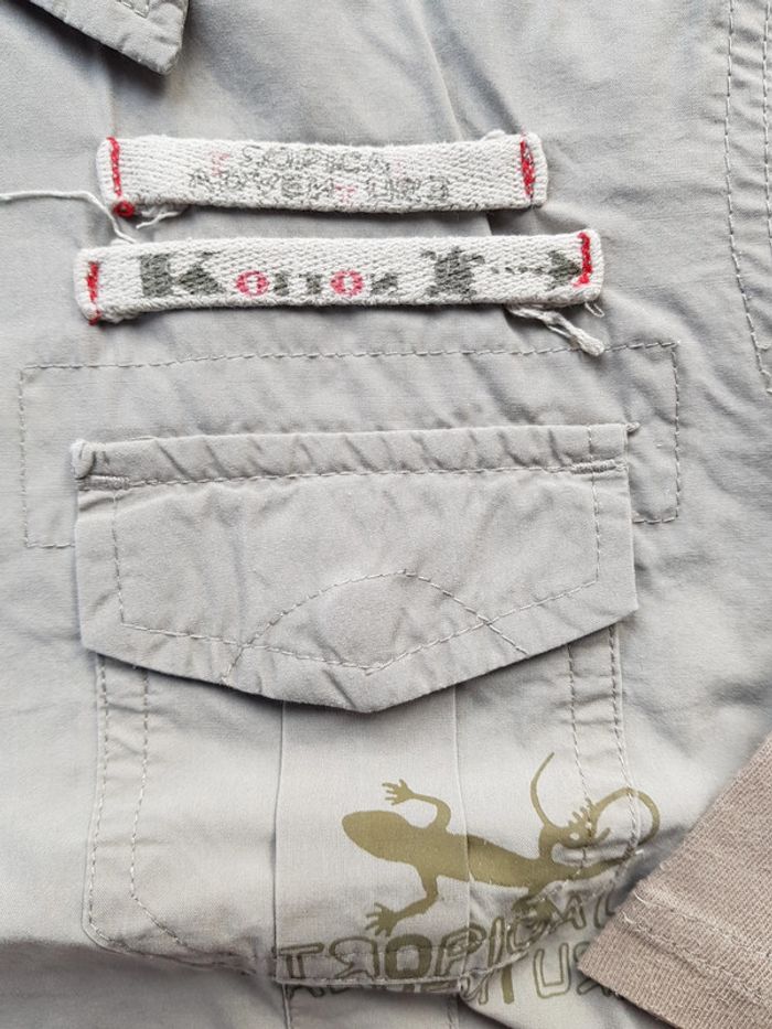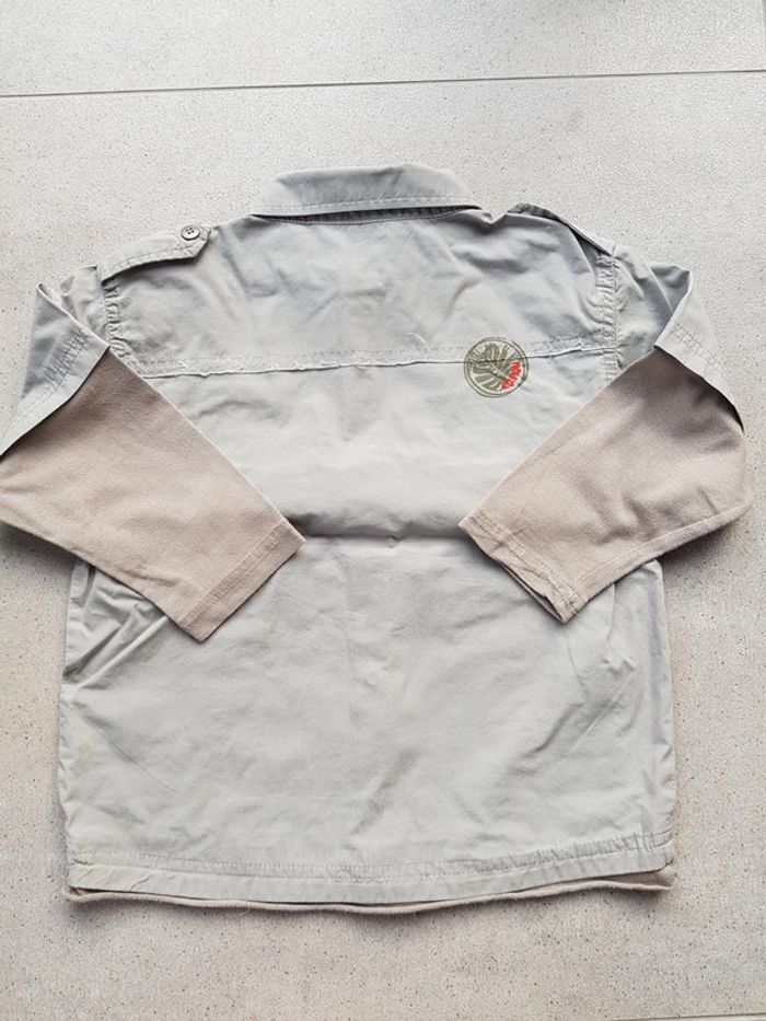 Chemise de couleur grise/kak à boutons pressions avec effet "baroudeur" superposition tee-shirt. Taille: 3 ans Maison non-fumeur
