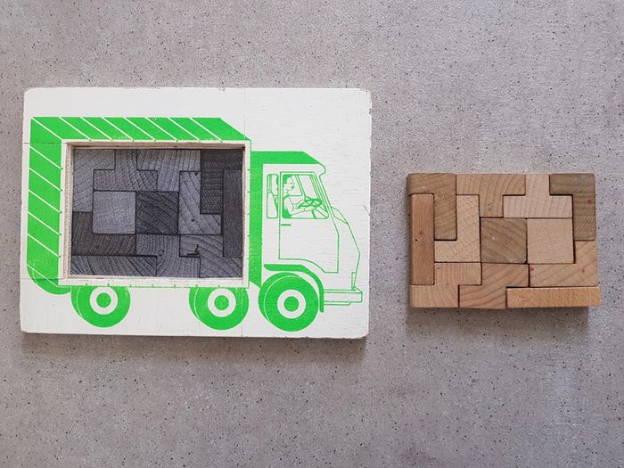 Puzzle en bois "camion" , l'enfant doit le charger selon le modèle, en bon état: quelques traces d'usure dues à l'utilisation (voir photos) Maison non-fumeur