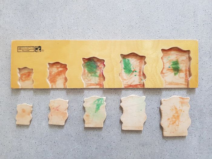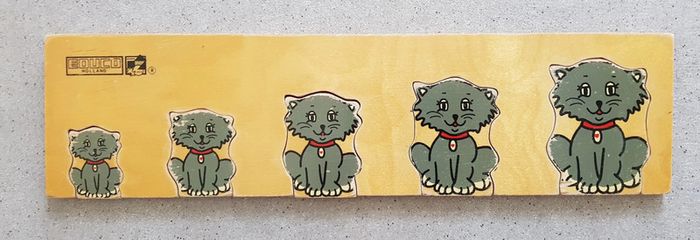 Puzzle en bois 5 chats pour apprendre l'ordre du + petit au + grand noté bon état car celui celui-ci a été crayonné à l'intérieur (voir photo) Maison non-fumeur