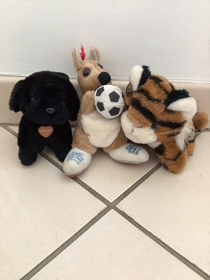 3 peluches (tigre, kangourou et chien) - photo numéro 1