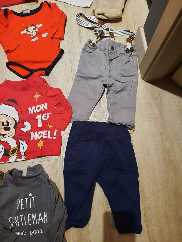 Lot de 17 pieces soit 9 neuves 8tbe 1 gilet knot so bad en haut à gauche tres chaud et epais 6 mois neuf passé 1x en machine 1 pull kiabi fin neuf passé 1x en machine 6mois 1 body mickey 6 mois neuf passé 1x en machine 1 pull noel rouge 6 mois neuf passé 1x en machine 1 pull benetton 6 mois avec N neuf passé 1x en machine 1 t shirt mickey mon premier noel avec bonnet (encore scellé) neuf passé 1x en machine 1 pantalon bretelle gris neuf passé 1x en machine tissaia 6 mois 1 t shirt gris col roulé gemo gentlemen neuf passé 1x en machine 1 ensemble beige et blanc lapin tres epais et chaud avec chaussette tbe 1 ensemble bleu marine t shirt et pantalon avec chaussettes porté 2 ou 3x 1 pantalon marron gemo porté 2 ou 3x 1 pantalon bleu marine knot so bad porté 2 ou 3x Maison non fumeur, premiere main, pas d'animaux D'autres vetements dont pyjamas et t shirt manches longues et chemises sur #laul57babyboy6mois