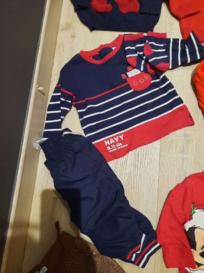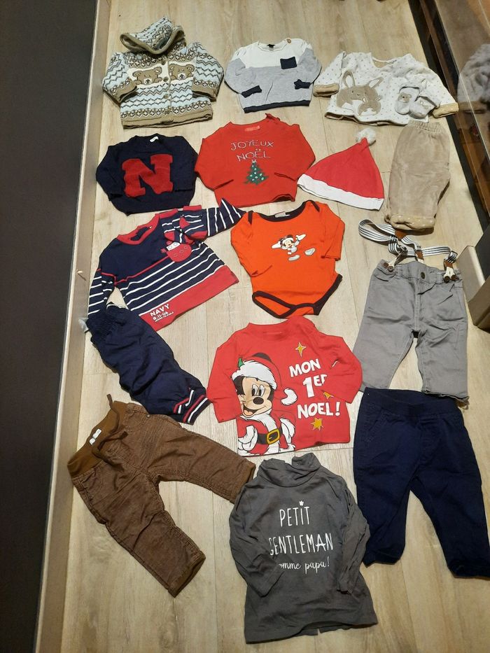 Lot de 17 pieces soit 9 neuves 8tbe 1 gilet knot so bad en haut à gauche tres chaud et epais 6 mois neuf passé 1x en machine 1 pull kiabi fin neuf passé 1x en machine 6mois 1 body mickey 6 mois neuf passé 1x en machine 1 pull noel rouge 6 mois neuf passé 1x en machine 1 pull benetton 6 mois avec N neuf passé 1x en machine 1 t shirt mickey mon premier noel avec bonnet (encore scellé) neuf passé 1x en machine 1 pantalon bretelle gris neuf passé 1x en machine tissaia 6 mois 1 t shirt gris col roulé gemo gentlemen neuf passé 1x en machine 1 ensemble beige et blanc lapin tres epais et chaud avec chaussette tbe 1 ensemble bleu marine t shirt et pantalon avec chaussettes porté 2 ou 3x 1 pantalon marron gemo porté 2 ou 3x 1 pantalon bleu marine knot so bad porté 2 ou 3x Maison non fumeur, premiere main, pas d'animaux D'autres vetements dont pyjamas et t shirt manches longues et chemises sur #laul57babyboy6mois