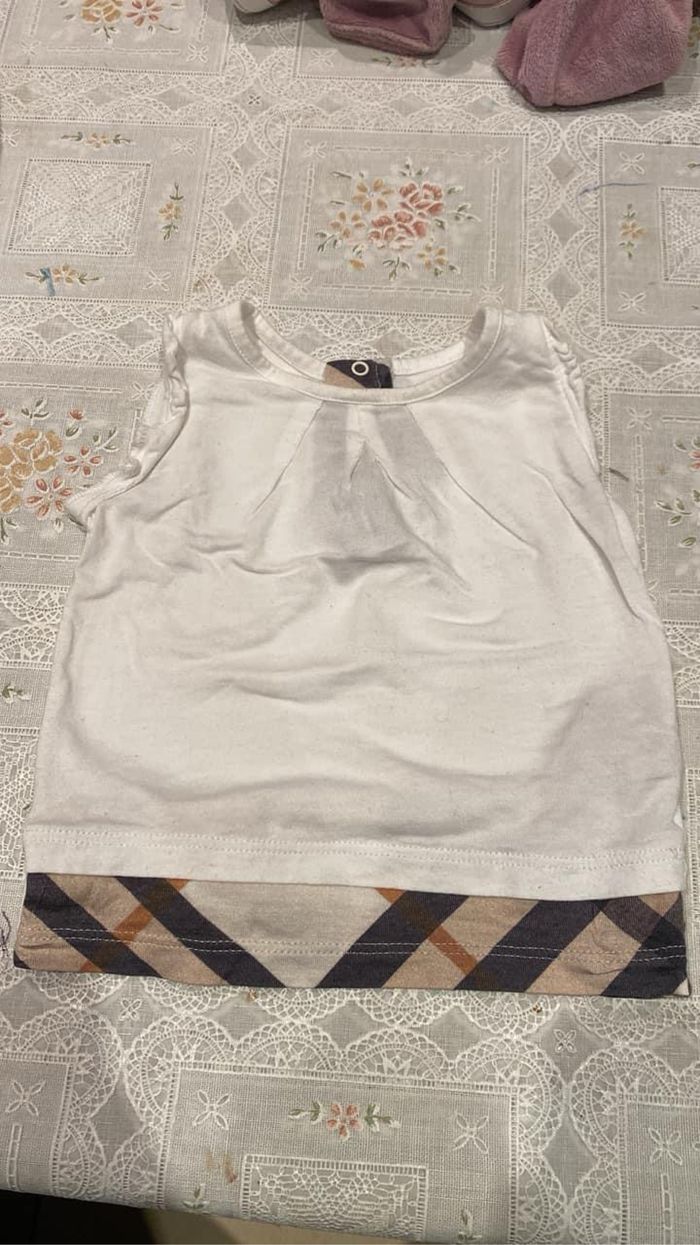 Bonjour, je vends cette authentique tee shirt de la marque BURBERRY. Il a été porté 2 fois. Très jolie. 6 mois. 67cm.