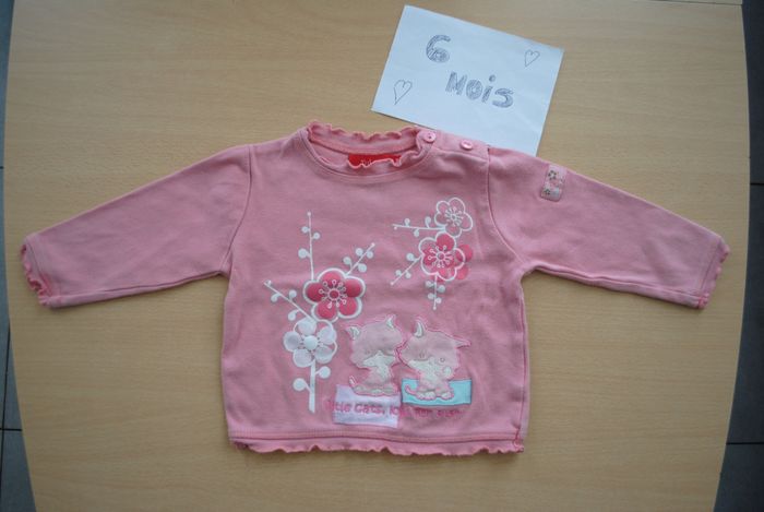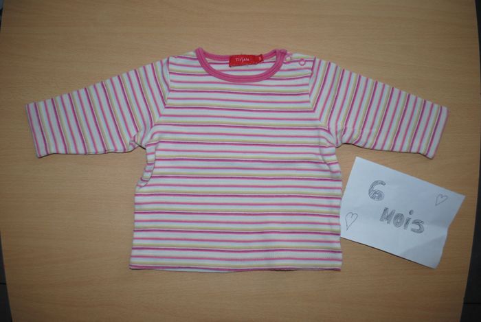 lot de 2 t-shirts fille 6 mois marque tissaia très bon état
