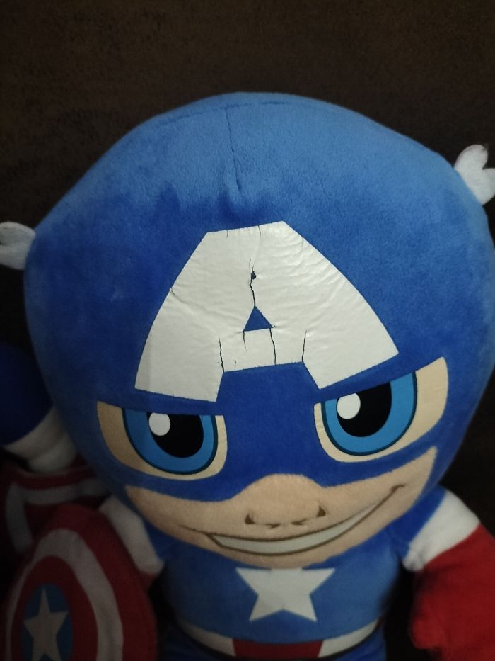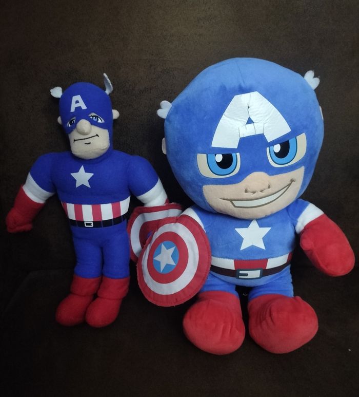 2 peluches captain America Encore en bon état 1 petit défaut sur chaque mais rien de méchant 42 et 34 cm Marque marvel 8€ les 2