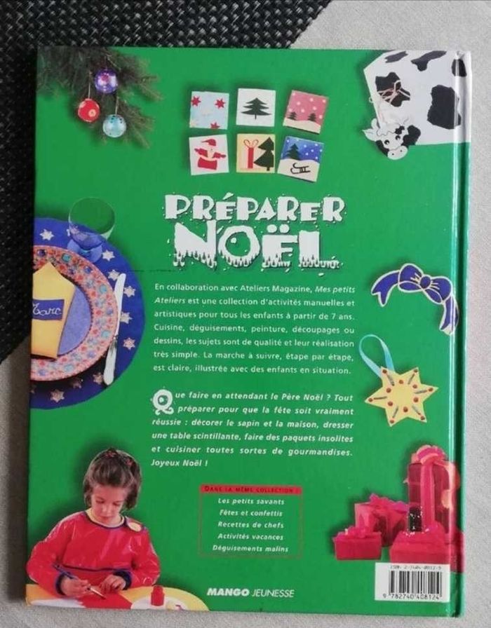 Collection mes petits ateliers Editeur Mango ISBN 9782740408124 Dimensions 24 × 31 cm Couverture cartonnée Que faire en attendant le Père Noël ? Tout préparer pour que la fête soit vraiment réussie : décorer le sapin et la maison, dresser une table scintillante, faire des paquets insolites et cuisiner toutes sortes de gourmandises. Joyeux Noël !